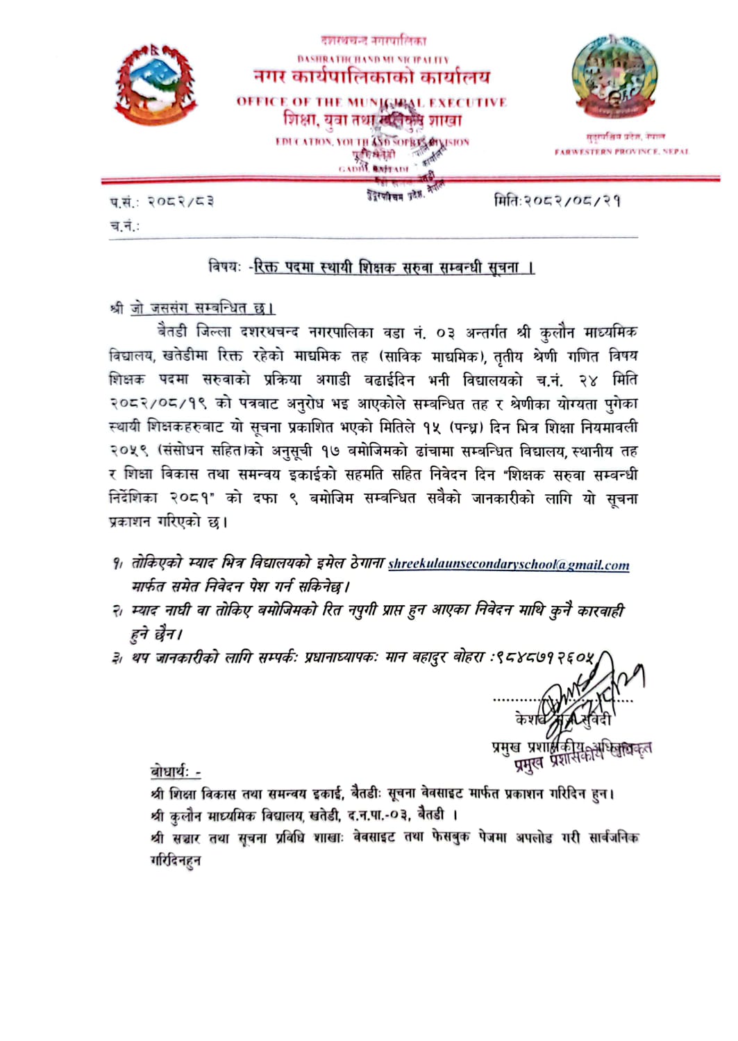 रिक्त पदमा स्थायी शिक्षक सरुवा सम्बन्धि सूचना ।।