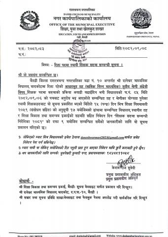 रिक्त पदमा स्थायी शिक्षक सरुवा सम्बन्धि सूचना ।।