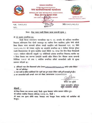 रिक्त पदमा स्थायी शिक्षक सरुवा सम्बन्धि सूचना ।।