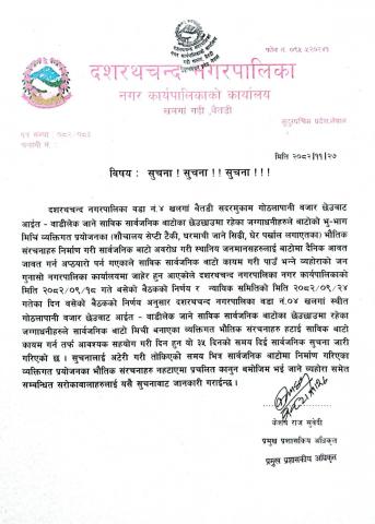 बालुवा बिक्रि तथा संकलन सम्बन्धि द्रोश्रो पटक प्रकाशित सूचना