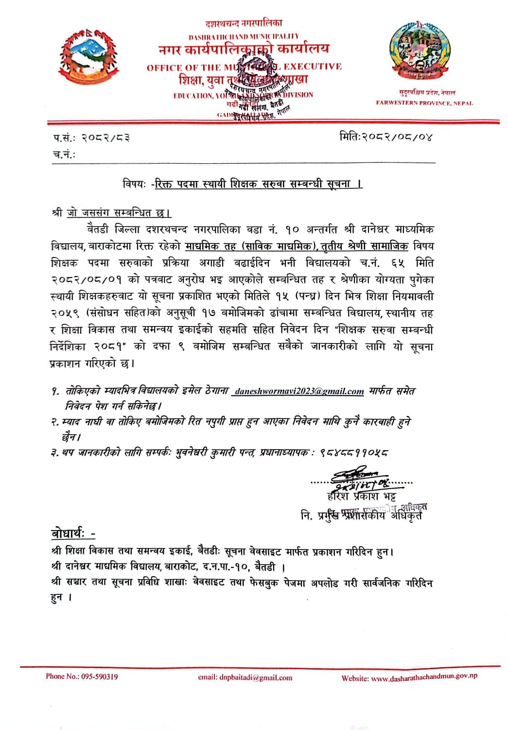 रिक्त पदमा स्थायी शिक्षक सरुवा सम्बन्धि सूचना ।।