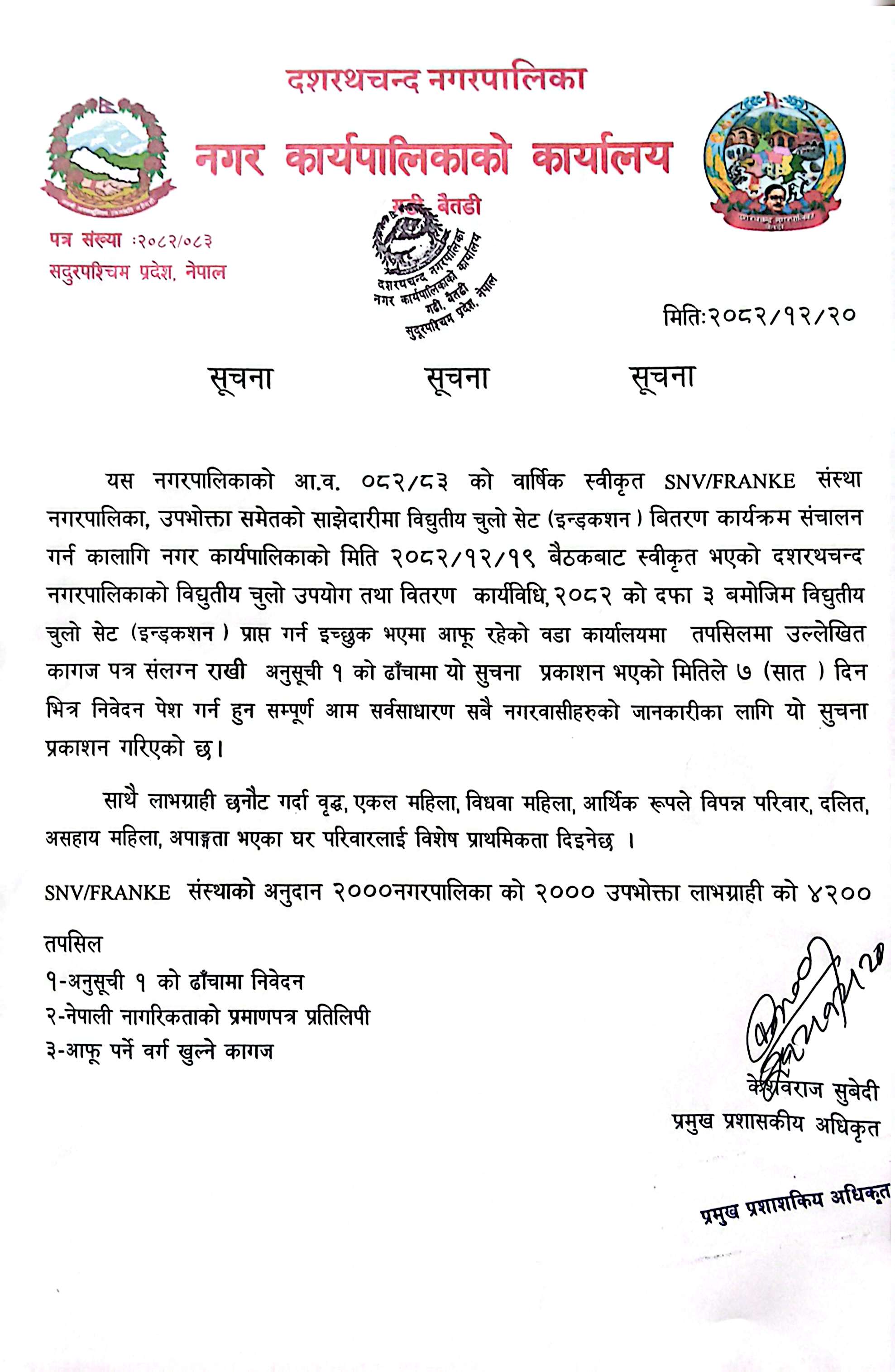 विद्युतिय चुलो अनुदानमा विवरण गर्ने सम्बन्धि सूचना