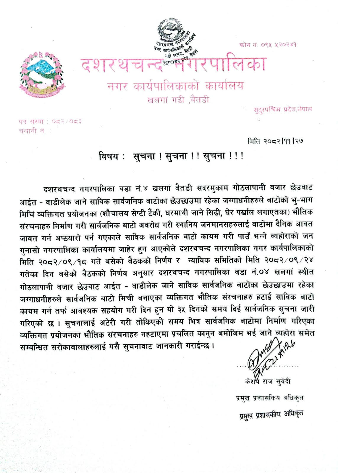 दशरथचन्द नगरपालिका, नगर कार्यपालिकाको कार्यालय